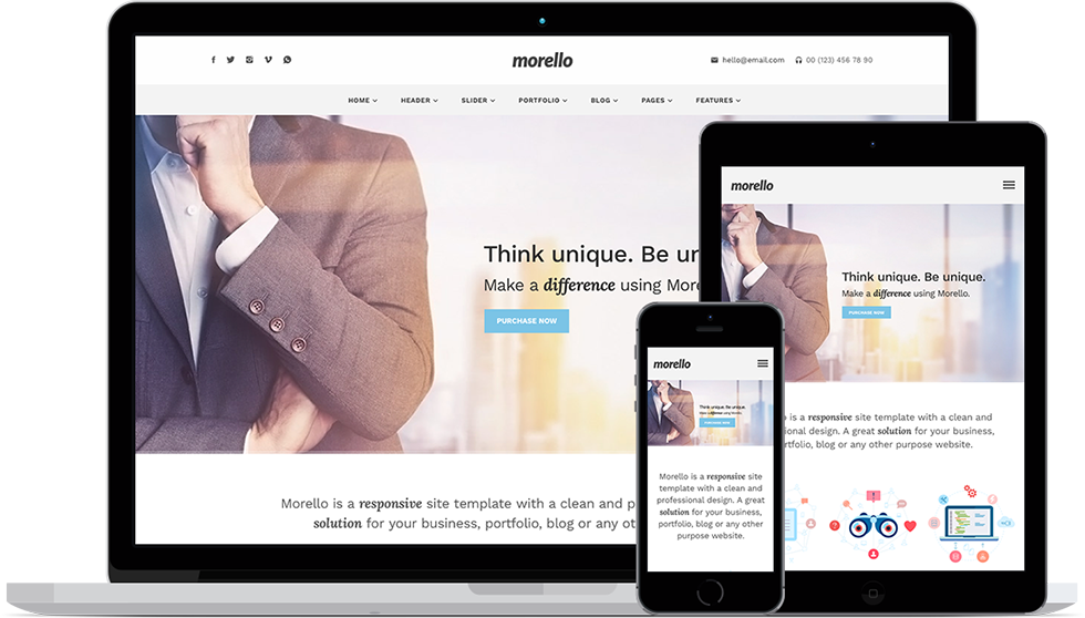 Morello is a responsive site template with a clean and professional design. A great solution for your business, portfolio, blog or any other purpose website.